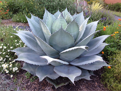 當(dāng)然要注意,龍舌蘭的品種是非常多的,有一些植株矮小,有一些植株高大,葉片的顏色、形態(tài)各不相同。如果想要布置比較高的屏障,就可以用到金邊龍舌蘭。如果想要布置比較矮小的圍欄,就可以用到鯨舌龍舌蘭。