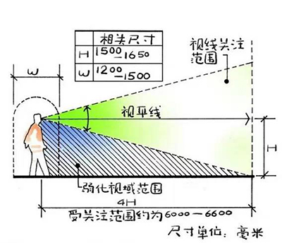 人眼關(guān)注的范圍大概是視點高度的4倍,