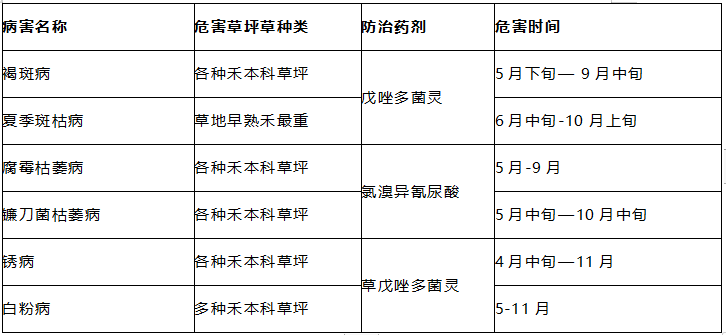 5月,草坪容易發(fā)生銹病、黑粉病、白粉病、褐斑病等病害,從下旬起應(yīng)做好預(yù)防,每隔10-15天噴灑一次保護(hù)性殺菌劑如萊恩坪安御衛(wèi),如有發(fā)生可使用萊恩坪安御樂進(jìn)行防除。