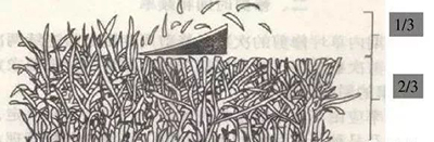 1/3原則:每次修剪量不能超過莖葉組織縱向總高度的1/3,也不能傷害根莖,否則會因地上莖葉生長與地下根系生長不平衡而影響草坪草的正常生長。