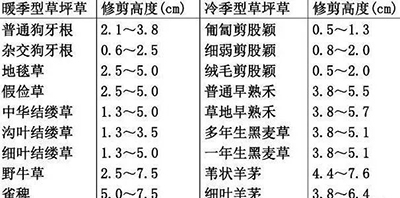 修剪高度(留茬高度)是修剪后地上枝條的垂直高度。不同草坪草因生物學(xué)特性不同,其所耐受的修剪高度不同。